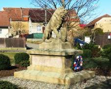 jihovýchodně od vsi Památník padlým Na návsi Radnice Po roce
