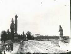 od 1979, původně na barokním mostě. Pamětní obelisk (pylon) byl přenesen ze