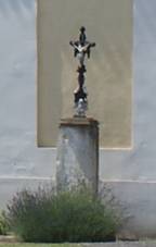 Kostel sv. Osvalda 1672, rozšířen 1742 Fara … Hřbitov S bránou 1715 Výklenková kaplička Se sochou sv. Jana Nepomuckého Železný kříž Východně od vsi Železný kříž Před kostelem Železný kříž 1893, centrální hřbitovní Boží muka Konec 17.stol. Památník padlým … |