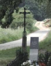 vlevo. Vročení kříže 1835. Železný kříž Zdroj C) Za obcí vpravo ve směru na Karlov-Nepomuk na kamenném podstavci