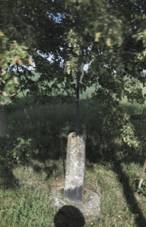nízkém kamenném podstavci. Kříž je zdobený u paty obdélnou deskou s motivem