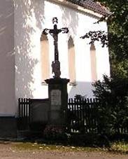 dříve na místě nynějšího hřbitova dřevěný kostelík, kde se odbývaly