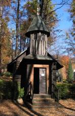 která zaujme výraznou jehlancovitou střechou. Tato drobná stavbička připomíná