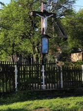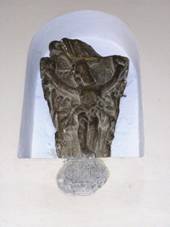původního dřevěného kostela. Z něho zůstal v předsíni zazděný kamenný kříž s