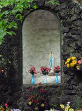 se nachází socha Panny Marie Lurdské v jeskyni. V kněžišti vlevo pod oknem je