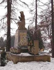 mramorovými deskami s vytesanými jmény, tvoří pomník padlých ze starobělské
