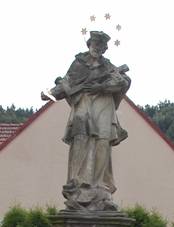 Socha sv.Jana Nepomuckého Na návsi, kol. 1767. dříve stávala u