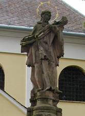 Socha sv.Jana Nepomuckého Ve výklenku nad schody na hřbitov,