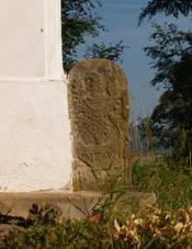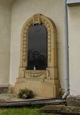 Památník padlým 1914-18 Na hřbitově u zdi kostela Hraniční kámen S moravskou orlicí a písmeny