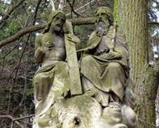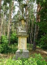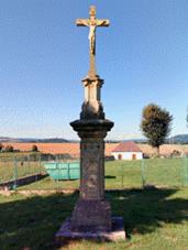 Kamenný kříž U lesa východně od vsi, s reliéfem P.Marie