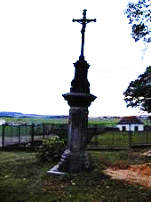 Bolestné na podstavci, kříž poškozen, 1848 Kamenný kříž Na horním severním kobci vsi Železný kříž Před hřbitovem, 1898