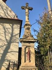 Bolestné na podstavci, chybí vrcholový kříž Škola