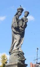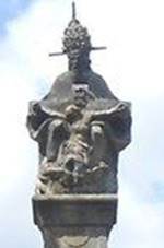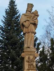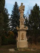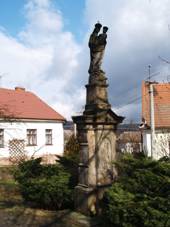 Socha P.Marie Svatohorské 1877 s reliéfem sv.Floriána na soklu Socha sv.Jana Nepomuckého V rohu návsi, chybí postranní