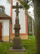 Kamenný kříž Před č.p.126, 1769 Kamenný kříž Za č.p.168, 1774 Kamenný kříž U kostela, 1727, s reliéfem P.Marie Bolestné, KP Dřevěný kříž V parčíku proti č.p.139
