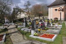 Obrazy Antonína Mühla z Nové Paky Brána na hřbitov barokní Hřbitov Kolem kostela Fara Č.p.198. Jednopatrová, spojená se