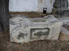 původně u vjezdu do zahrady č.p.287 Kamenný portál Dřevěného mostku mezi hřbitovem a