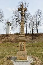 (Vorder Ehrnsdorf) Zvonice – Kaple sv.Víta V centru obce Kamenný kříž Na návsi Kamenný kříž U silnice na Křenov. Nápis „Errichtet zur Ehre Gottes“ bez datace.