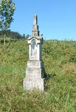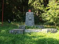 Poškozen vandaly. Železný kříž V poli východně od vsi Památník partyzánů Posledního boje paravýsadku