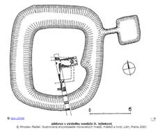 nepravidelném čtyřúhelníku hradiska 25x18m. zemanské sídlo zaniklo na přelomu
