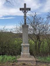 z umělého kamene Kamenný kříž U silnice na Borotín Kamenný kříž U č.p.317 Kamenný kříž 1903, obnoven z trosek 2022, u