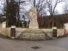 Jaroměřicím, trojstranná s obrazy svatých na plechu Památník padlým Od A.Bučáka, na okraji zámeckého
