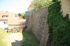 opevnění hradební zeď, bašta, Malá branka, barbakán Velké brány Dochován severní úsek Bašta V ulici v Zahrádkách Malá