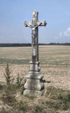 Boží muka u hřbitova, z poloviny 19. století Kamenný kříž s křížem na kopci v polích jižně od