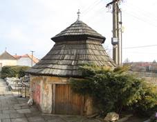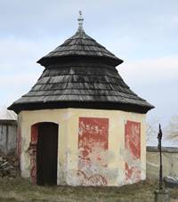 Kostel sv. Kateřiny z poloviny 18. století Kaple na hřbitově krytá šindelem Kaple na hřbitově krytá šindelem Hřbitov Kolem kostela Márnice V novější části hřbitova