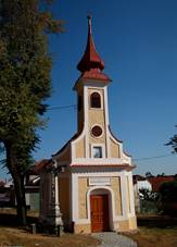 Kaple sv. Floriána 18.stol. Kaplička U silnice na Velký újezd Výklenková kaplička Severně od vsi Kamenný kříž U č.p.138. 1856, Nápis: Pochválen buď