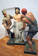 standartou. Legionář dramaticky drží Krista za levé rameno. II.zastavení - Ježíš bere na sebe kříž Zdroj D) V