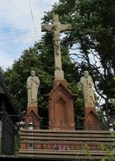 U zvonice, se sochami po stranách Kamenný kříž