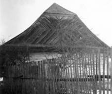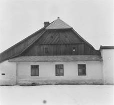 rybinovou vazbou. Před hlavním vstupem je přistavěn zděný „barák“