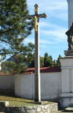 kříž u kostela z roku 1860 (Sedmimetrový žulový kříž je z 1 kusu