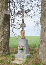 západně od vsi při křížové cestě Dřevěný kříž U silnice