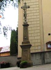 Sloup se sochou P. Marie Immaculaty C) u kostela z roku 1840