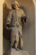 Socha Anděla strážného C) Ve výklenku na průčelí kostela