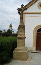 kříž D) Vedle kaple. 1836 s reliéfem P.Marie