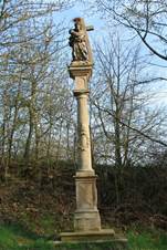 sochou. Dřík sloupu na čelní straně tentokrát zdobí oválná kartuš ukončená