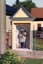 s přilehlým domem a její kopie postavena vedle Výklenková kaplička U č.p.52/11, nově postavena 2020 z Ytongu jako náhrada za zbořenou u sousedního domu