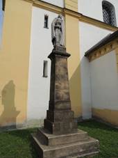 Bohu a Jeho všemohoucnosti mudruješ, rozhlédni se, rozvaž a umlkni. Socha P.Marie Před kostelem Kamenný kříž Před kostelem Boží muka U č.p.804, morová, na paměť epidemií
