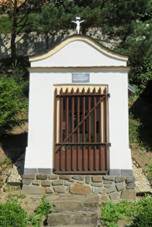 obrazy na plechu nahrazeny kamennými reliéfy. I.zastavení … II.zastavení … III.zastavení … IV.zastavení … V.zastavení … VI.zastavení … VII.zastavení … VIII.zastavení … IX.zastavení … X.zastavení … XI.zastavení … XII.zastavení … XIII.zastavení … XIV.zastavení … Dřevěný kříž Nedaleko