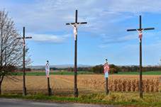 křížů. U silnice na Mikolajice tři kříže a postavy P.Marie