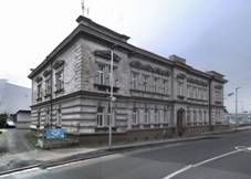 podlouhlá cihlová patrová budova se nalézá ve výrazné urbanistické pozici na