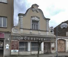 [Radnice] Vyhořela 1945 Škola O.Novotný, 1911-14 Sokolovna O.Novotný, 1911-14 Kulturní dům Socialistický realismus Památník Dr.Emila Holuba … Pošta … Škola … Městská spořitelna … Měšťanský dům č.p.8 Se zdevastovanou fasádou
