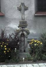 Fara Zdroj C) Vedle kostela Kamenný kříž Vedle bočního vchodu do kostela