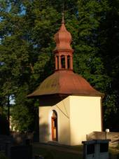 Kostnice Zdroj 2) na hřbitově, 19.stol. s výmalbou interiéru. z 19.