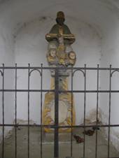 Nedaleko rychty, uvnitř kapličky 1717, polychromovaná
