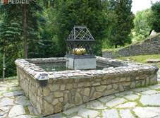 andělíčka s rybou umístěna 3 zlatá jablka, kašna provedena zcela