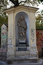1298, přestavěn barokně 1659-77 Výklenková kaplička sv.Jana Nepomuckého