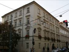 součástí Valdštejnského paláce. Trojkřídlý objekt s vnitřním lichoběžným